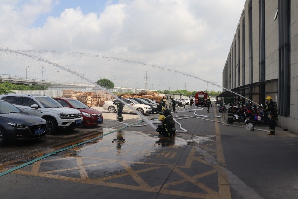 本次演习模拟场景为公司1号楼原料仓库发生火灾,消防控制室确认火情,启动应急预案,微型消防站接到火警,第一时间到达现场组织人员疏散,进行初期火的扑救,因火势蔓延较快,公司应急救援人员、微型消防站无法控制火势,请求外部支援。随后消防、公安、交通等应急救援部门到达现场,公司应急救援人员向消防救援大队介绍了火灾的基本情况后,将现场指挥权交由消防救援大队指挥长。各方救援和应急人员在指挥长的指挥下,按演习方案有条不紊地实施相应的应急响应行动,直至完成全部演习步骤。