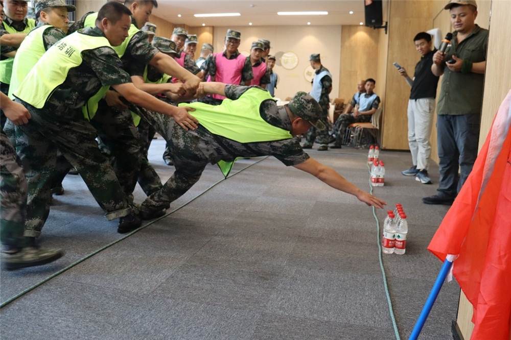 简单的热身后,活动正式开始。教官将人员分为3个小队,每队10人,并由队员推选出了每队的队长。在随后的活动中,各队队员在队长的指挥下,通过默契的配合,顽强的意志,爆发出强大的 团队力量,完成了教官布置的一项项任务。活动持续了近三个小时,在激烈的角逐中,老兵们使出浑身解数,分工合作,团结互助,展现出了纪律严明、不怕苦、不服输的军人风采。同时现场精彩纷呈,不乏欢声笑语。